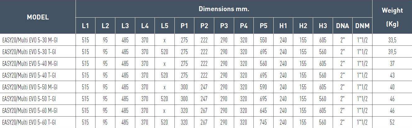GRUP DE POMPARE - NOCCHI - EASY20/MULTI EVO 5 - DIMENSIUNI (mm) |