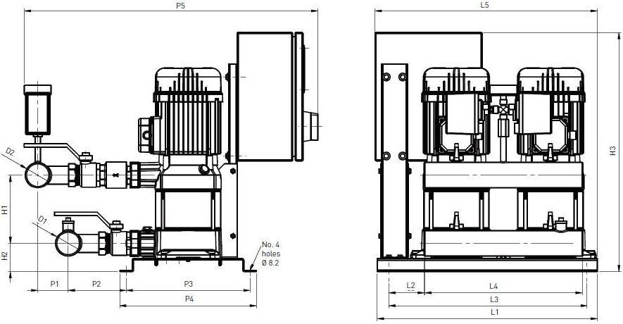 Acestea sunt seturi de racordare pentru presurizarea automată a sistemelor de distributie a apei cu alimentare monofazică, constând în: 2 pompe, tablou electric, bază, colectori de admisie si de distributie, întrerupătoare de presiune, manometru si supapă de retinere.