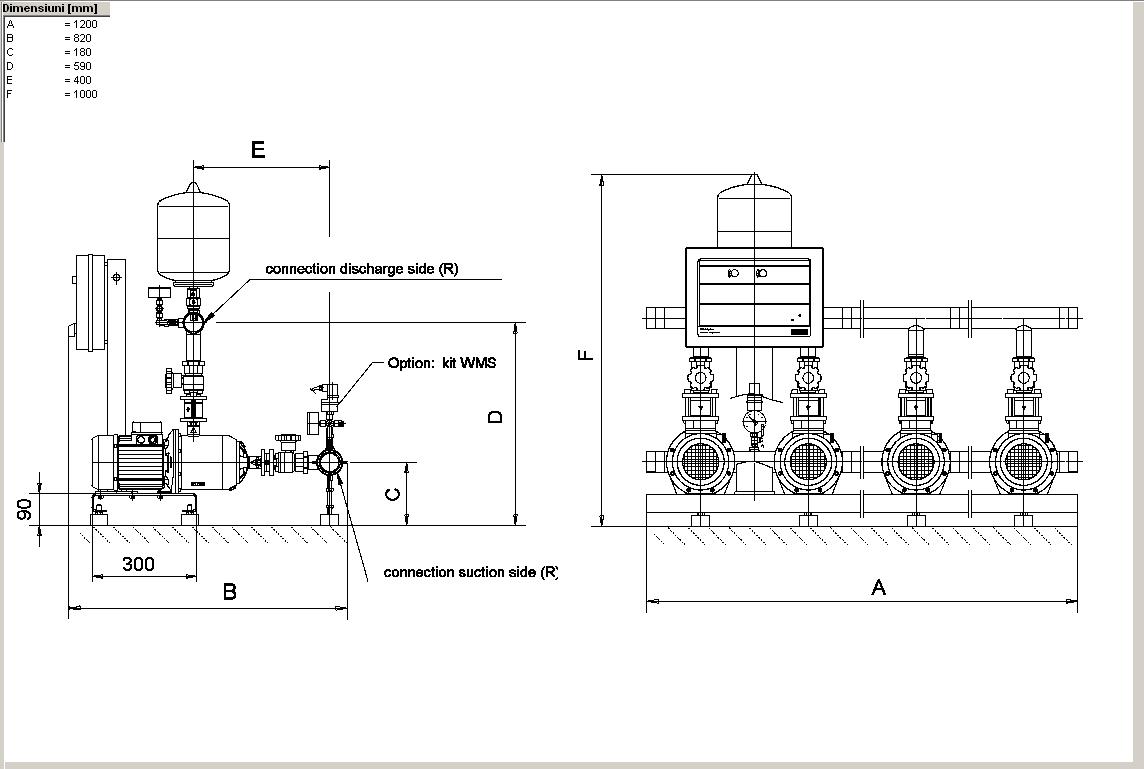 | GRUP DE POMPARE WILO ECONOMY CO-4 MHI 406/ER-RBI - DIMENSIUNI | |