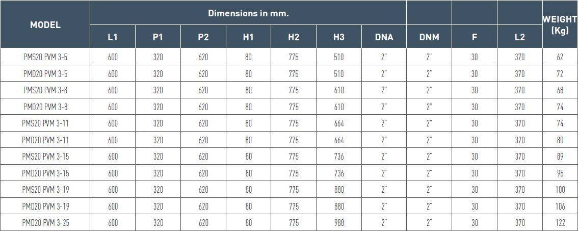 GRUP POMPARE NOCCHI - PMS20 PVM 3 - TABEL DATE TEHNICE |