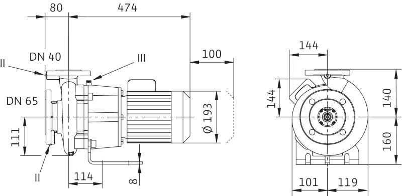 POMPA CIRCULATIE WILO CronoBloc BL 40/120-2,2/2 - Dimensiuni