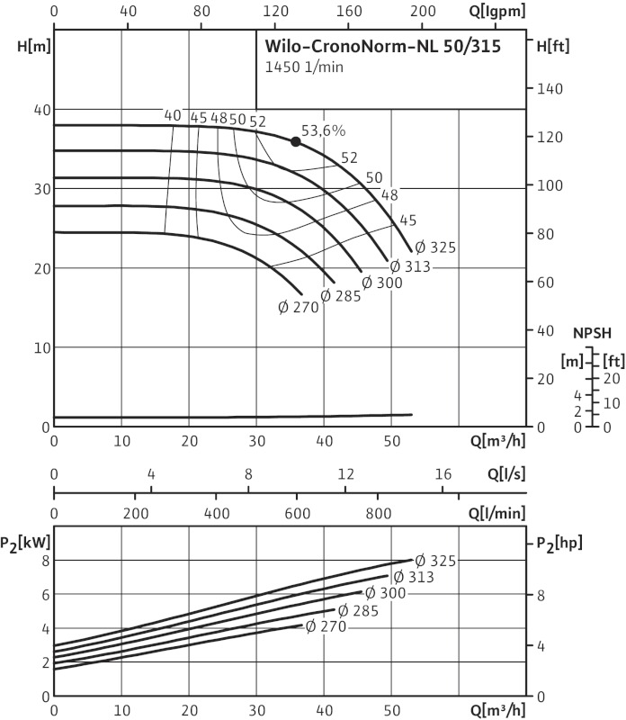 POMPA CIRCULATIE WILO CRONONORM NL 50/315 - 4 W - 1450 RPM FARA CUPLAJ DEMONTABIL - DATE TEHNICE - |