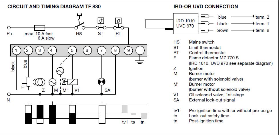Automat pentru arzatoare Satronic TF 830 -Schema diagrama
