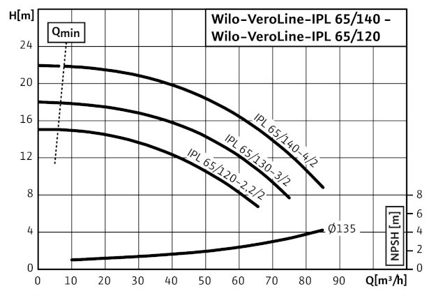 POMPA CIRCULATIE WILO VEROLINE IPL 65/120 - Grafic