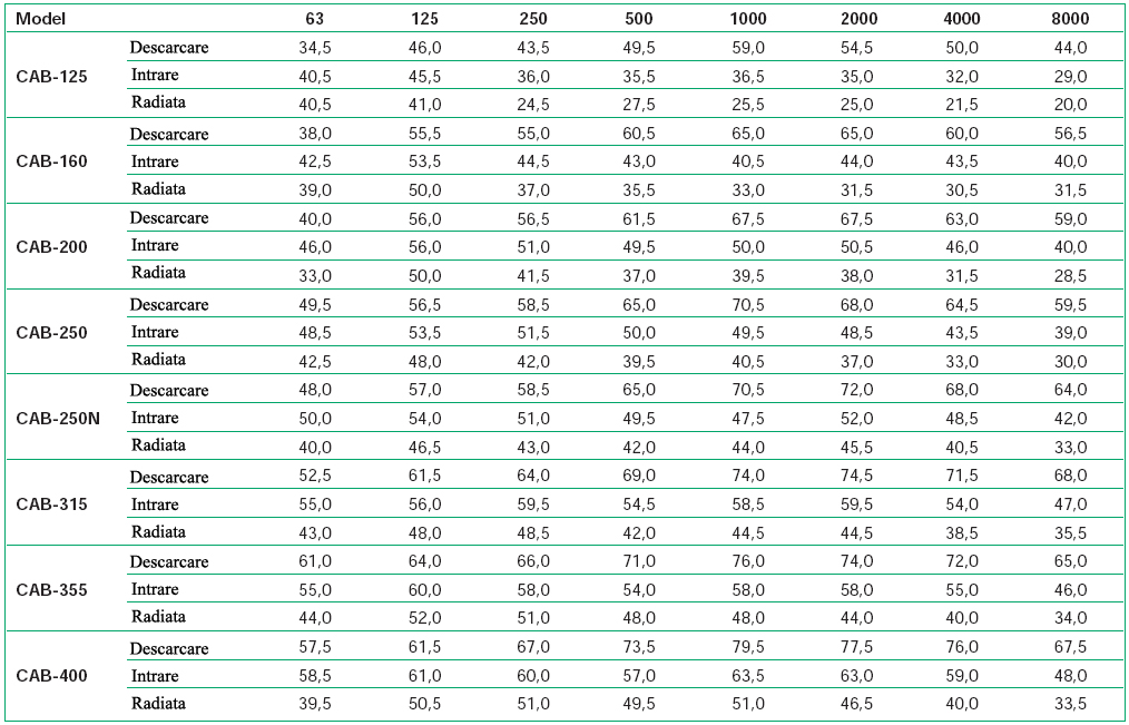 | CARACTERISTICI ACUSTICE VENTILATOARE CENTRIFUGALE SERIA CMB/CMT SOLER PALAU |